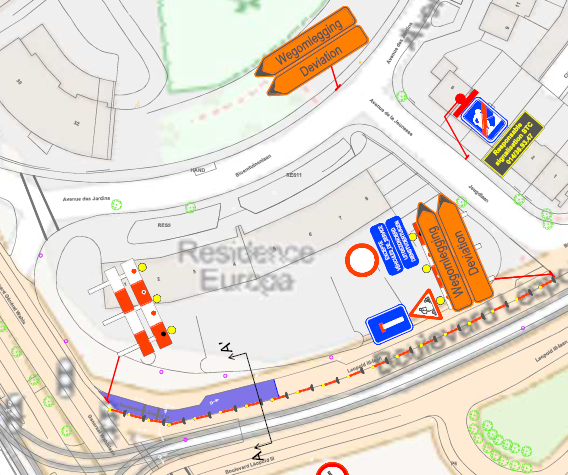Du 16 mars au 30 avril, la petite Latérale du Boulevard Léopold III sera complètement fermée à la circulation. Une déviation sera mise en place et assurée via l’Avenue de la Jeunesse et l’Avenue des Jardins.