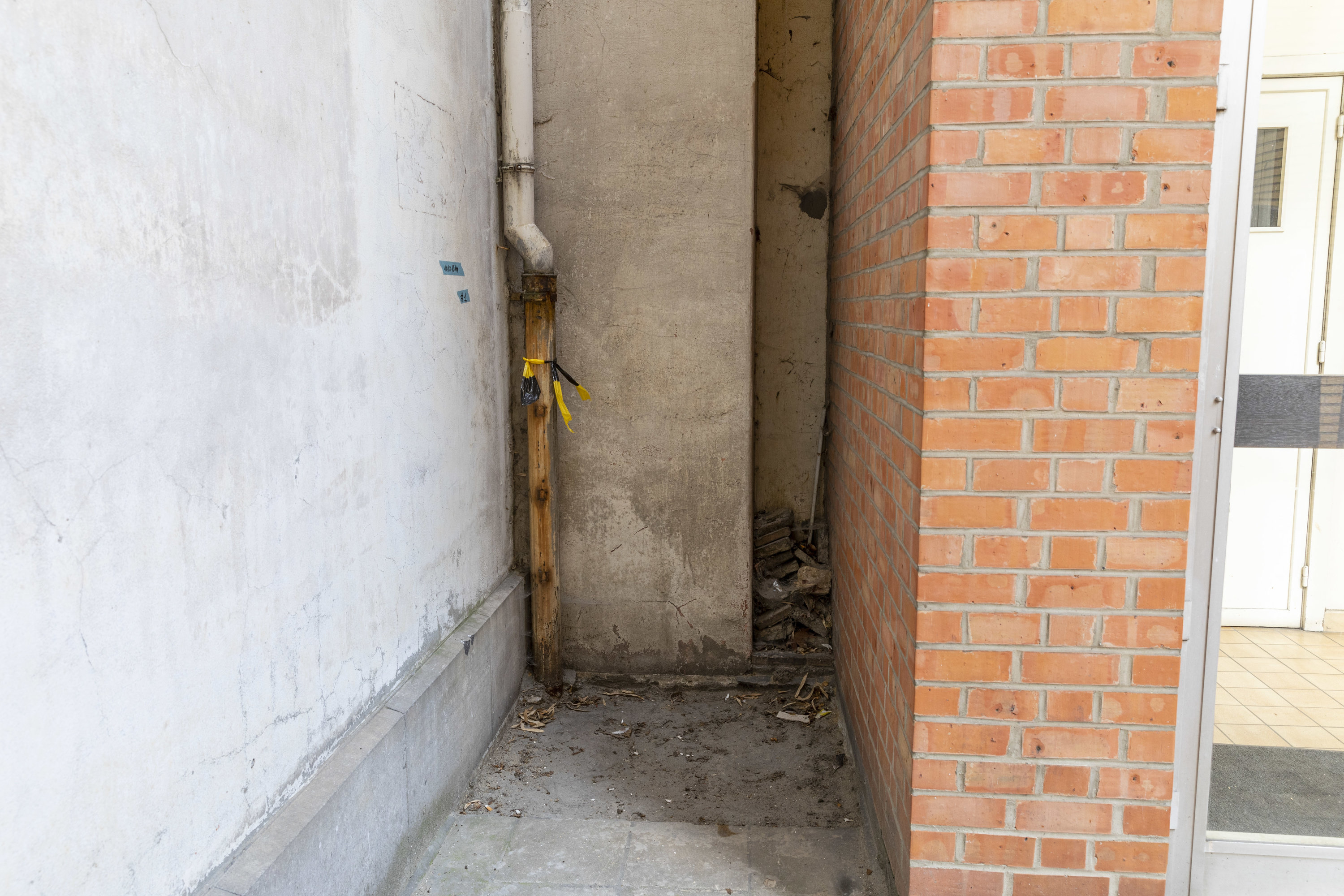 Een put in de koer? Dat hoort zo. Hierlangs werd de staat en diepte van de funderingen onderzocht. De put werd slechts gedempt met zand om hem makkelijk toegankelijk te houden indien verdere testen nodig zouden zijn.