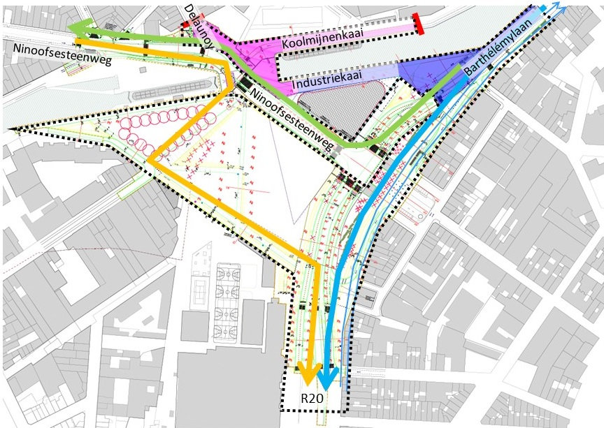 Er wordt vanaf volgende maandag gewerkt aan het kruispunt van de Ninoofsesteenweg met de Delaunoystraat en aan de Koolmijnenkaai tot de Evariste Pierronstraat. De Delaunoystraat wordt hiervoor afgesloten ter hoogte van de Ninoofsesteenweg, maar de E. Pierronstraat blijft bereikbaar.