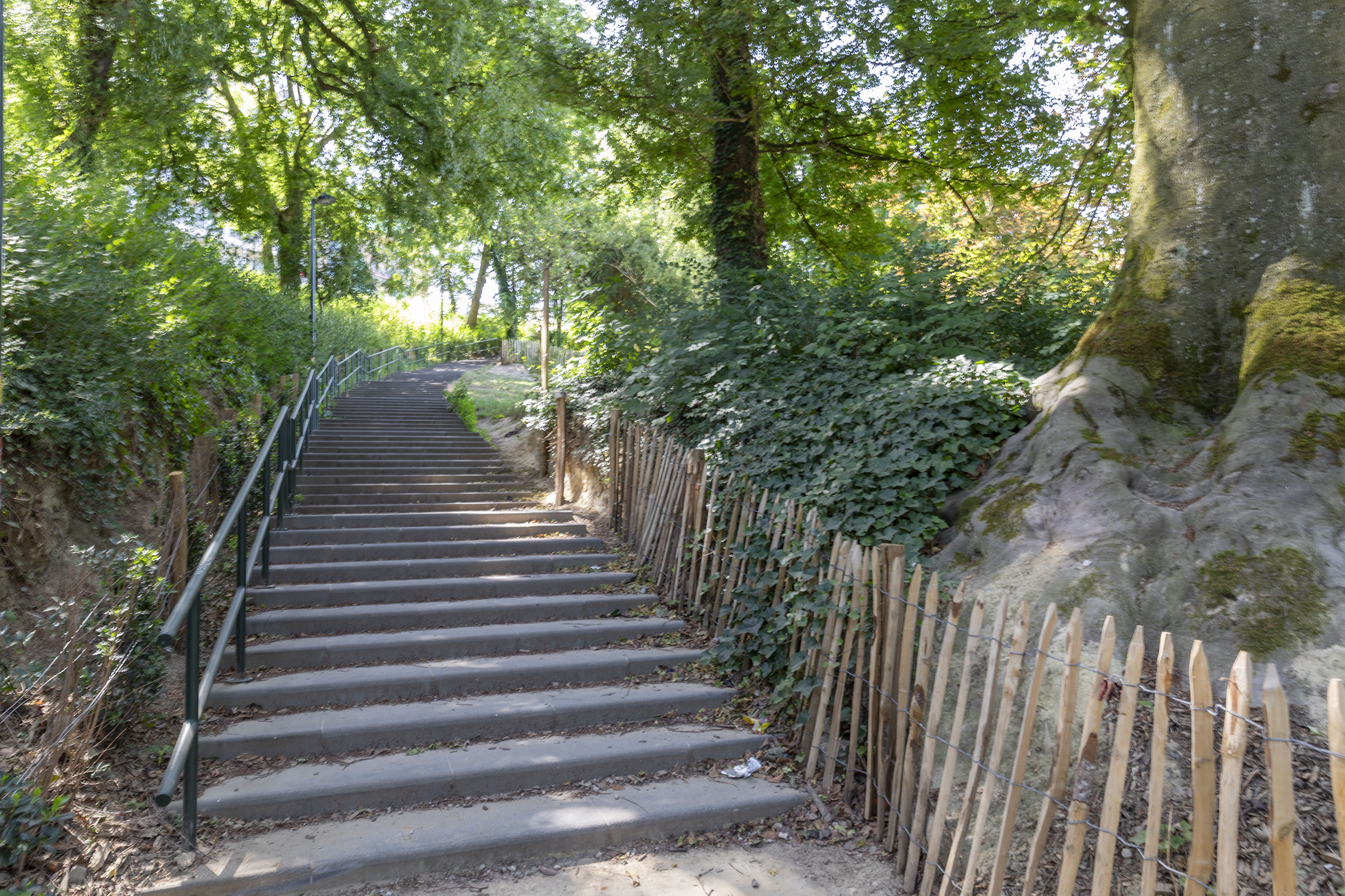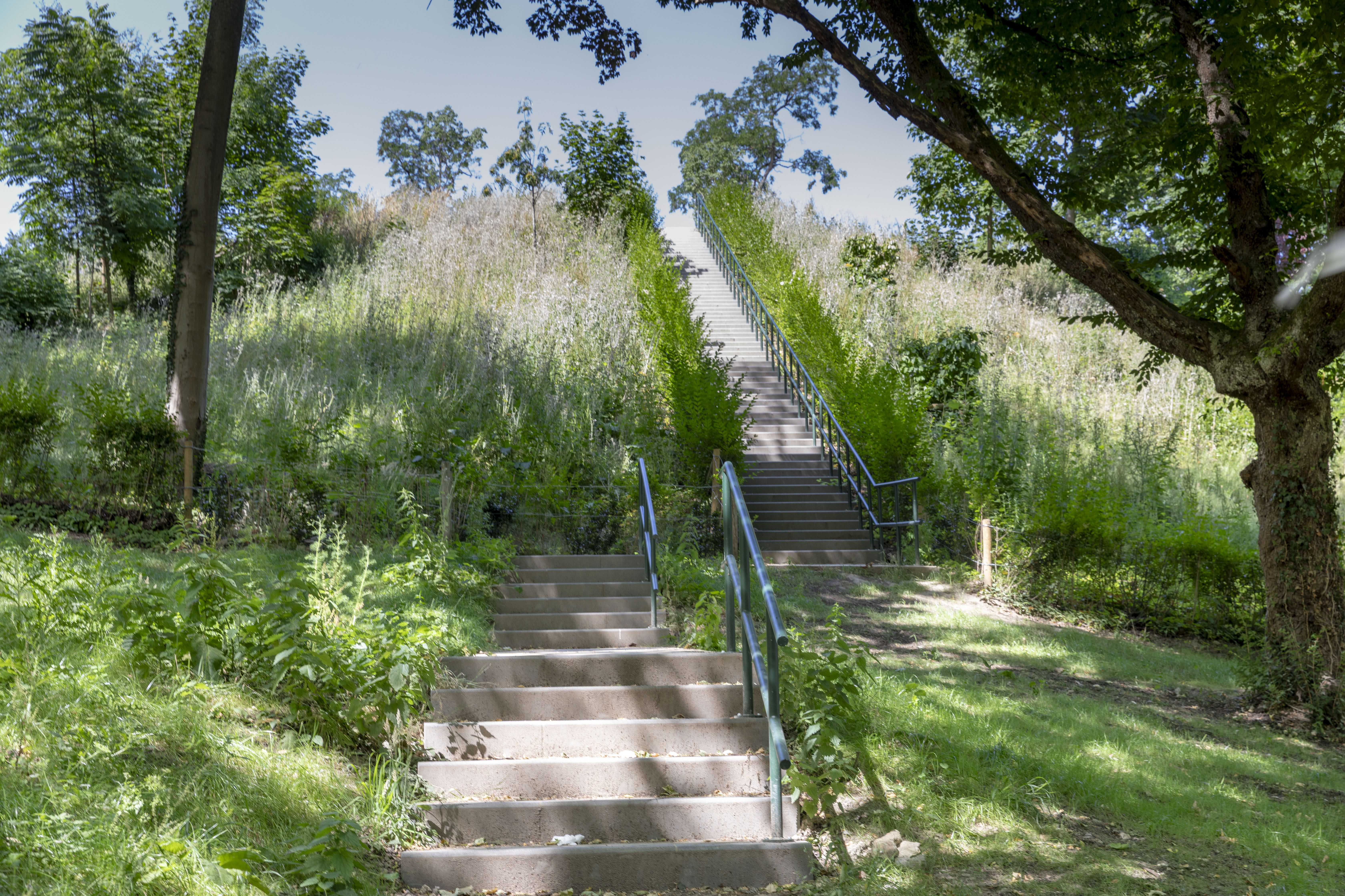L’eau de pluie ne dévalera plus à travers le parc en érodant les chemins et en noyant les pelouses. Deux grandes zones d’infiltration, des noues et un réseau d’écoulement améliorent la gestion des eaux de manière durable.