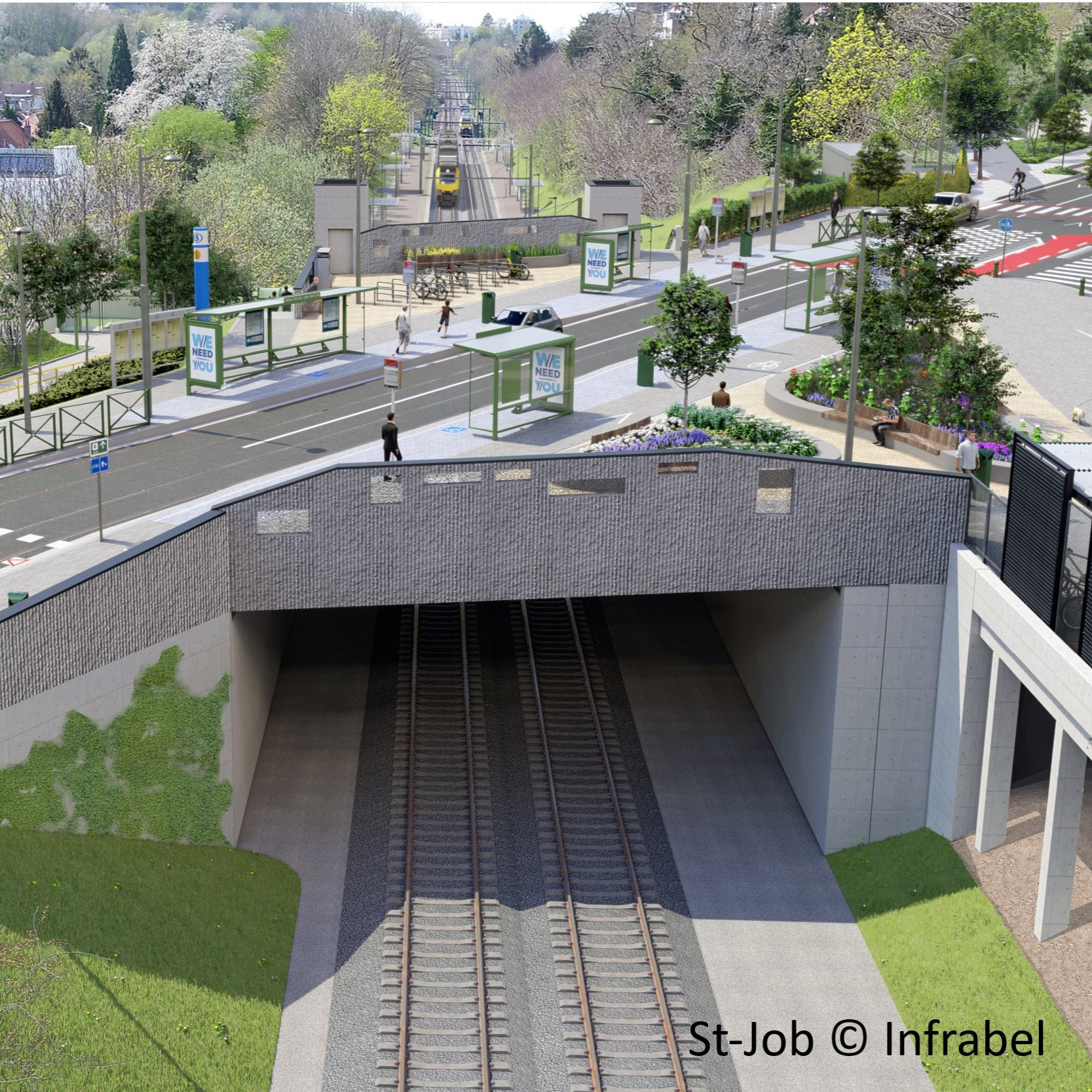 Infrabel a bénéficié de 2,8 millions d'euros pour le nouveau pont ferroviaire de la gare de Saint-Job à Uccle, dont 1,7 millions d’euros ont été versés en 2024. Le pont sera un pôle multimodal du transport, avec plus d'espace pour les piétons et les cyclistes, un abri à vélos, un arrêt de bus et de tram, et des ascenseurs vers le quai du train.